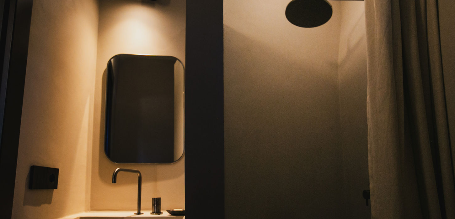 Soft textures, gravel flooring, and a minimalist design complete this serene retreat. Blackout curtains ensure a restful sleep at any time of day.